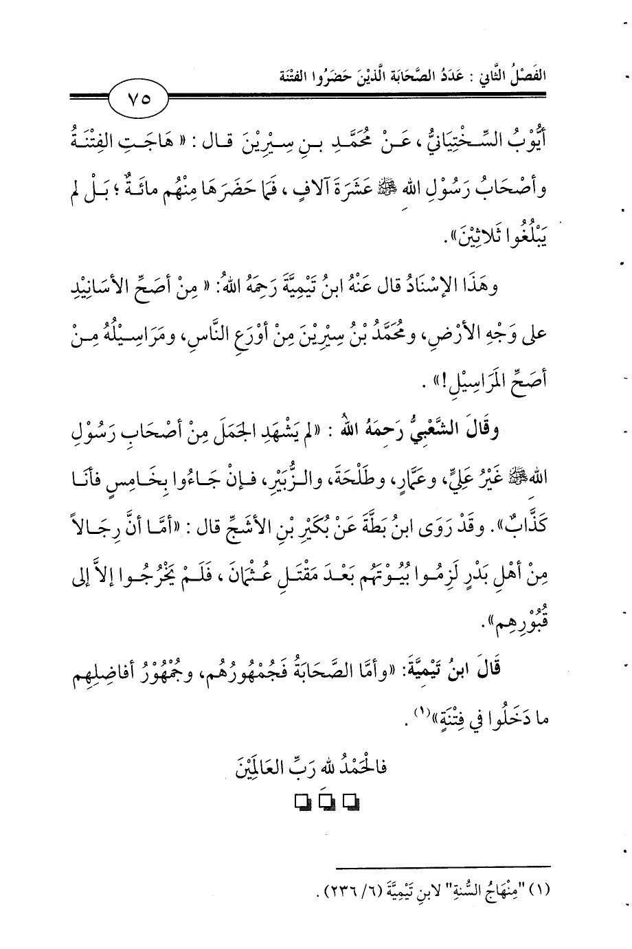 (¬1) «مِنْهَاجُ السُّنةِ» لابنِ تَيْمِيَّةَ (6/ 236).