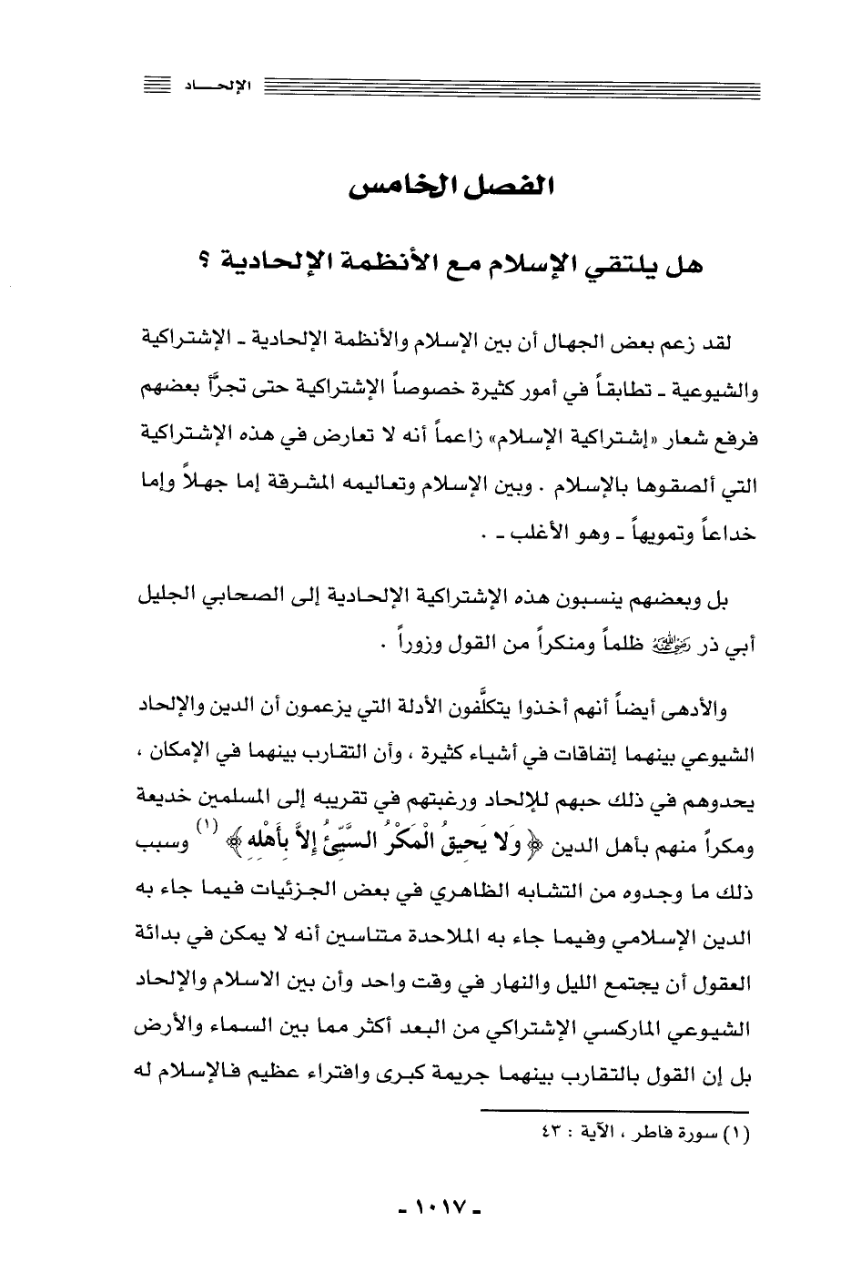 الفصل الخامس: هل يلتقي الإسلام مع الأنظمة الإلحادية؟