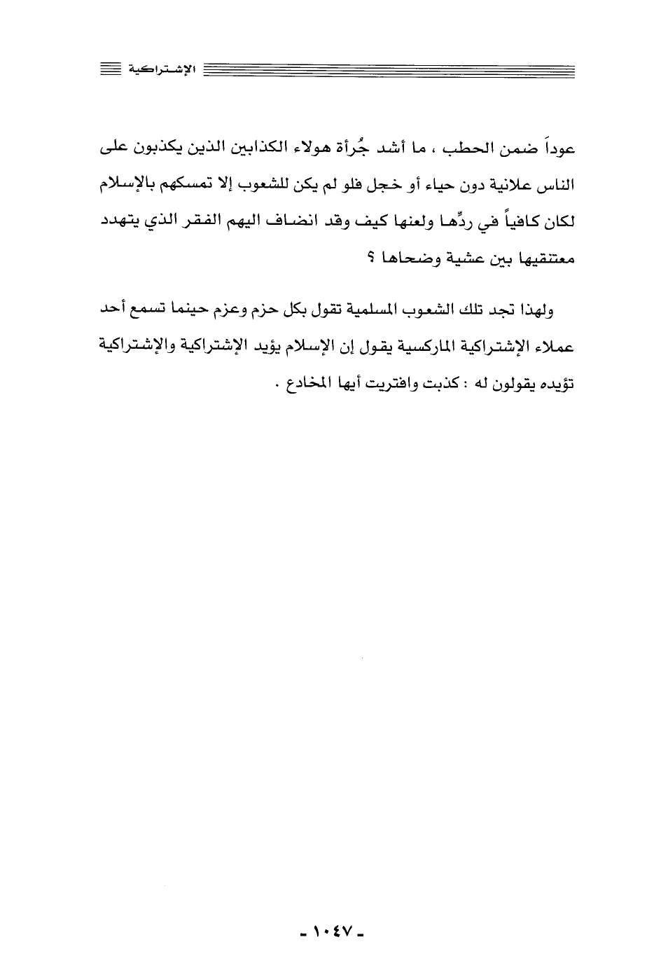 ولهذا تجد تلك الشعوب المسلمة تقول بكل حزم وعزم حينما تسمع أحد عملاء الاشتراكية الماركسية يقول: إن الإسلام يؤيد الاشتراكية والاشتراكية تؤيده, يقولون له: كذبت وافتريت أيها المخادع.