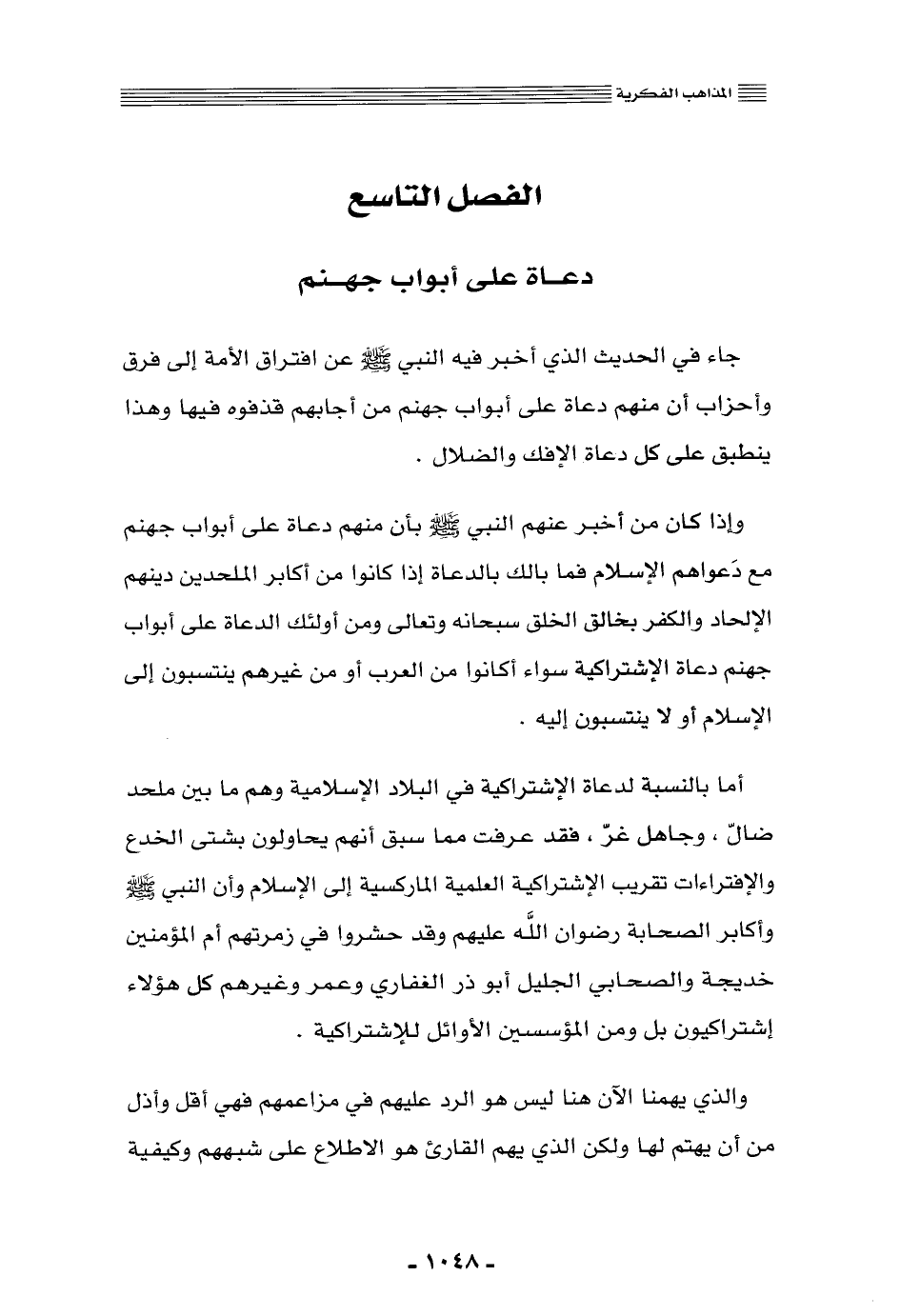 وإذا كان مَنْ أخبر عنهم النبي -صلى الله عليه وسلم- بأنَّ منهم دعاة على أبواب جهنم مع دعواهم الإسلام, فما بالك بالدعاة إذا كانوا من أكابر الملحدين, دينهم الإلحاد والكفر بخالق الخلق -سبحانه وتعالى, ومن أولئك الدعاة على أبواب جنهم دعاة الاشتراكية, سواء أكانوا من العرب أو من غيرهم, ينتسبون إلى الإسلام أو لا ينتسبون إليه.