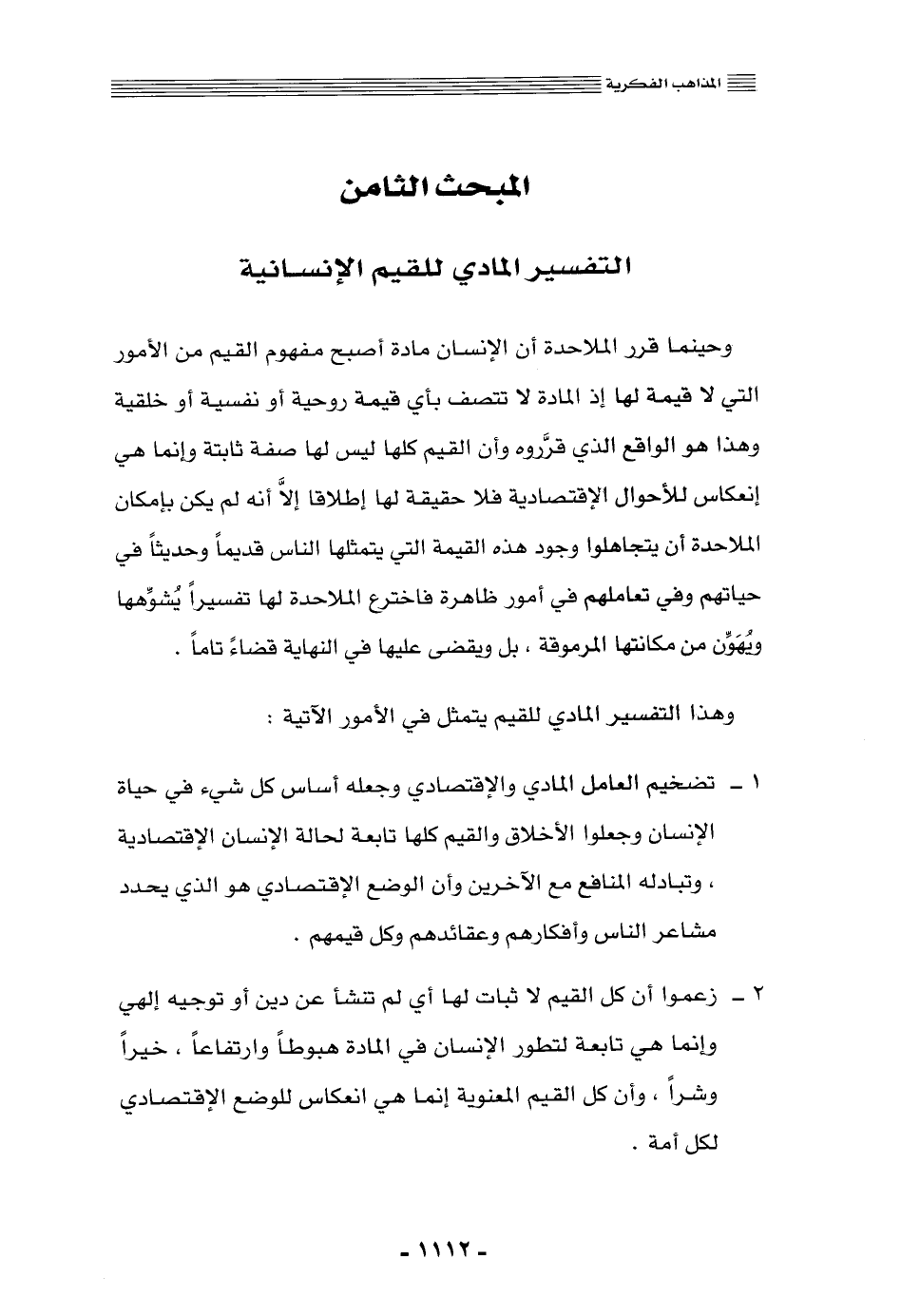 المبحث الثامن: التفسير المادي للقيم الإنسانية