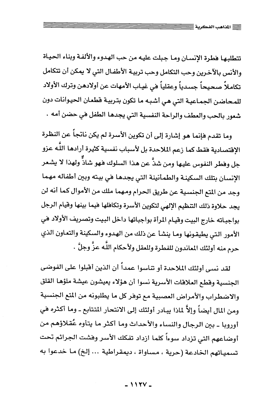 لقد نسي أولئك الملاحدة أو تناسوا عمدًا أنَّ الذين أقبلوا على الفوضى الجنسية وقطع العلاقات الأسرية, نسوا أن هؤلاء يعيشون عيشة ملؤها القلق والاضطراب والأمراض العصبية, مع توفر كل ما يطلبونه من المتع الجنسية ومن المال أيضًا, وإلّا لماذا يبادر أولئك إلى الانتحار المتتابع -وما أكثره في أوروبا- بين الرجال والنساء والأحداث, وما أكثر ما يتأوه عقلاؤهم من أوضاعهم التي تزداد سواء كلما ازداد تفكك الأسرة وفشت الجرائم تحت تسمياتهم الخادعة "حرية، مساواة، ديمقراطية ... إلخ", ما خدعوا به