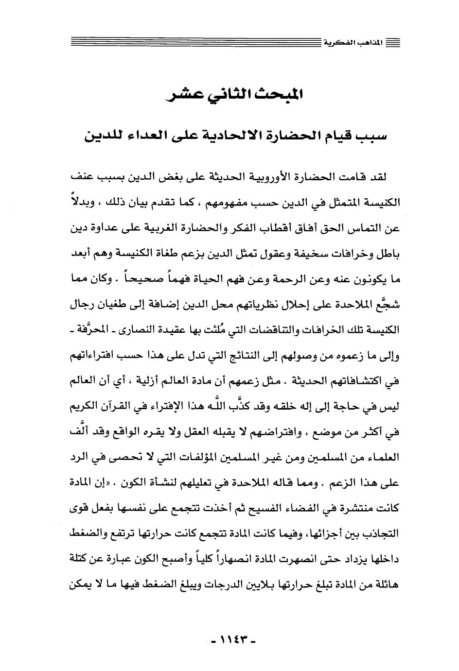 المبحث الثاني عشر: سبب قيام الحضارة الإلحادية على العداء للدين