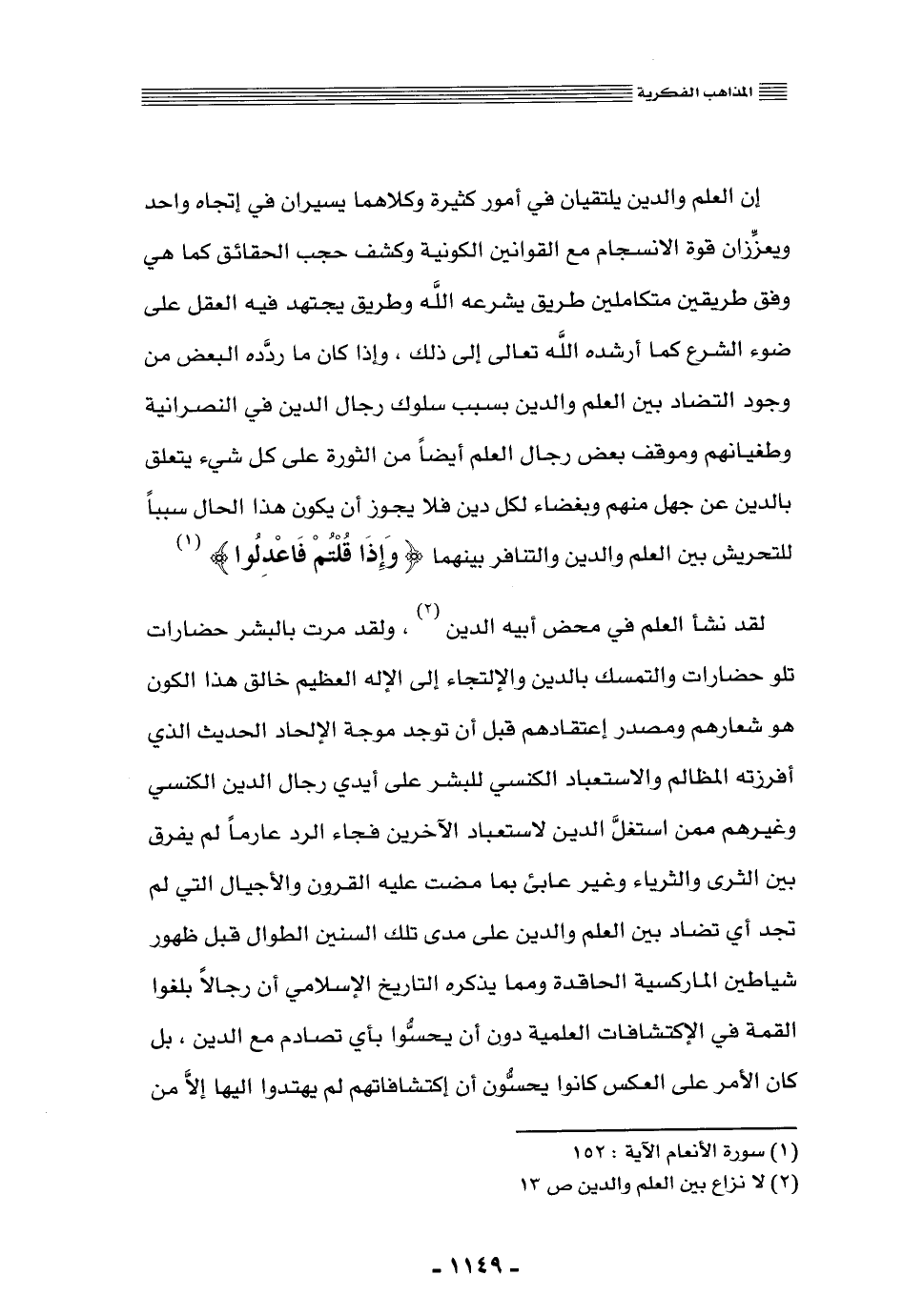 كتاب المذاهب الفكرية المعاصرة ودورها في المجتمعات وموقف المسلم منها