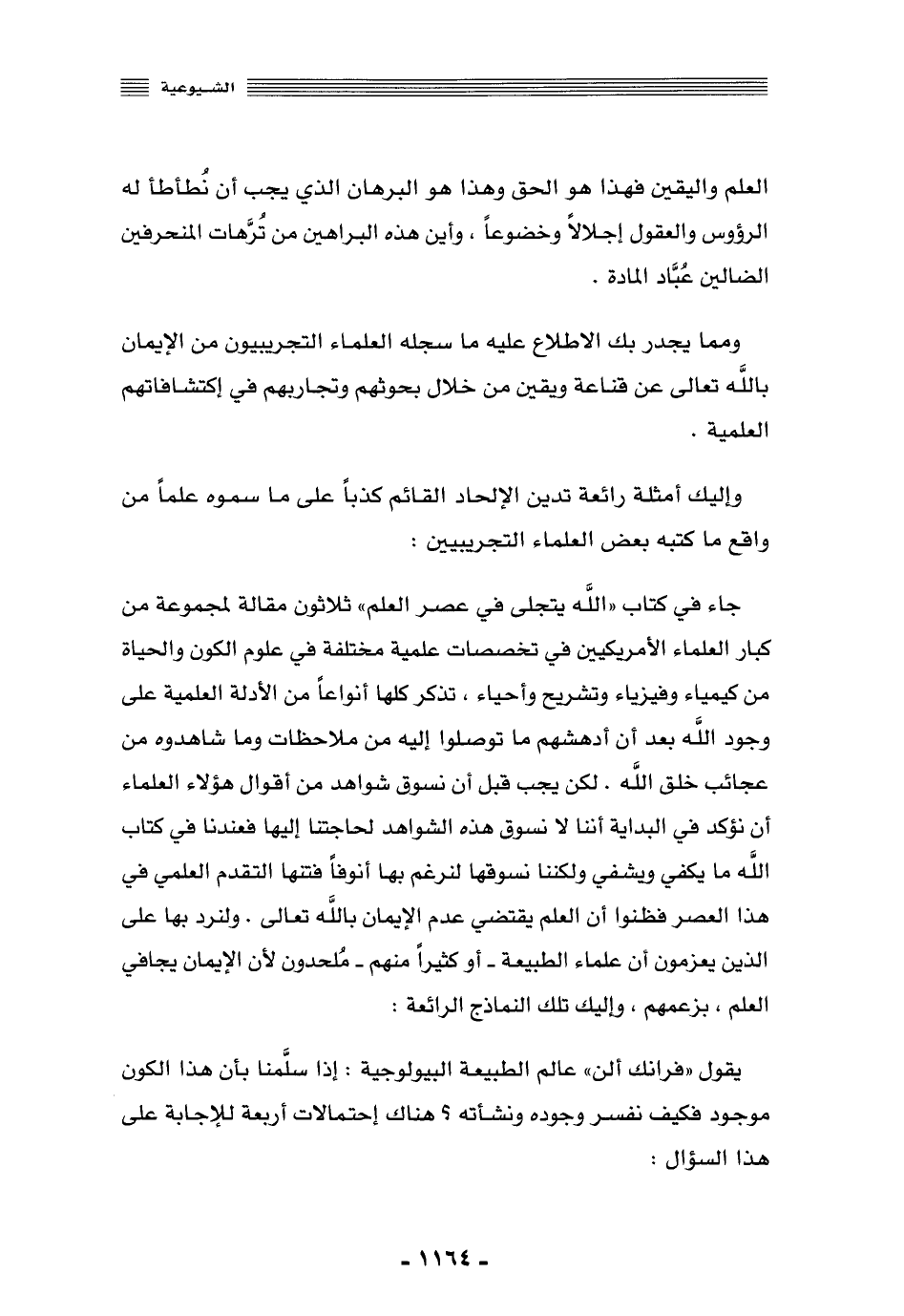 العلم واليقين, فهذا هو الحق, وهذا هو البرهان الذي يجب أن نطأطأ له الرءوس والعقول إجلالًا وخضوعًا، وأين هذه البراهين من ترهات المنحرفين الضالين عُبَّاد المادة.