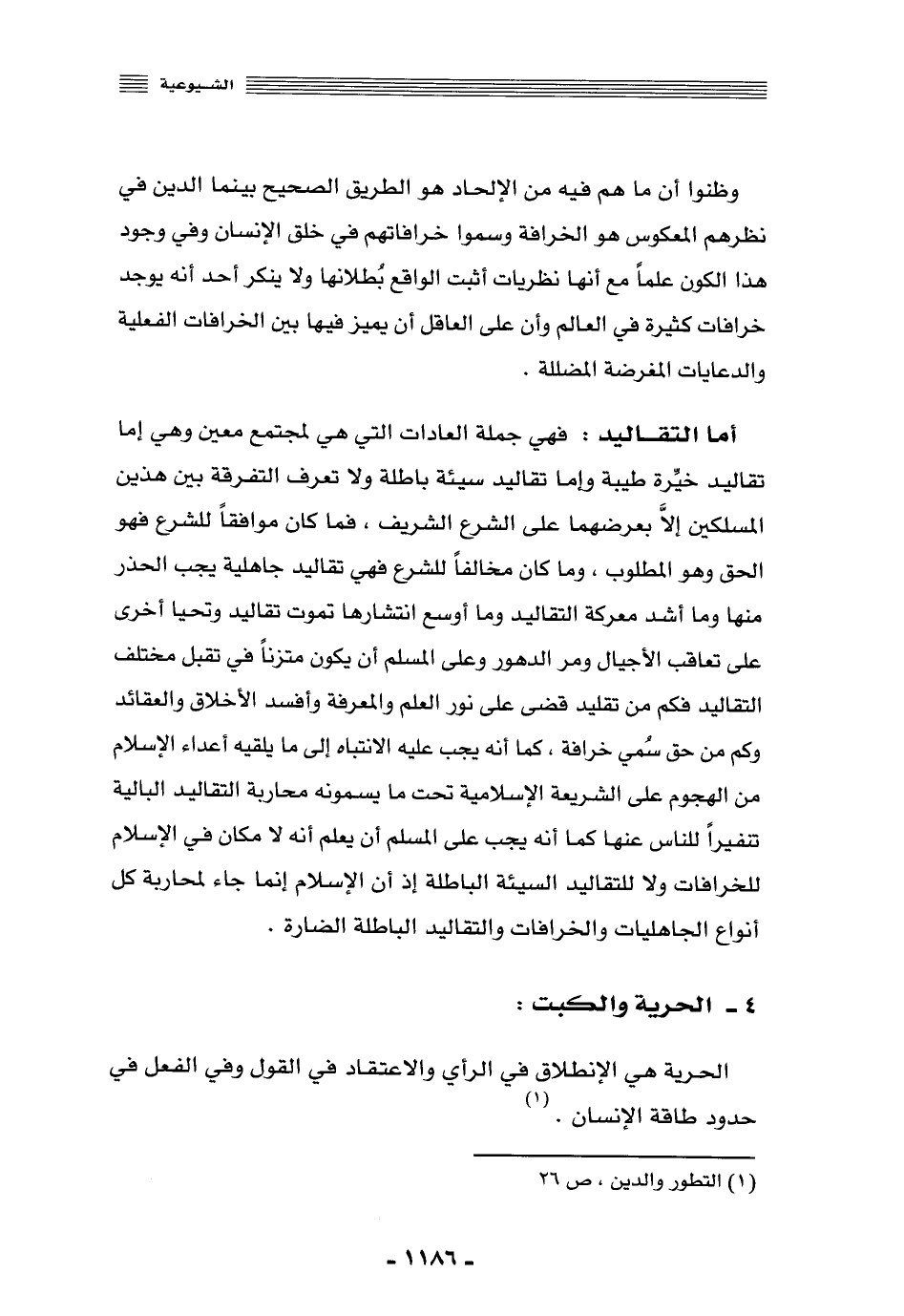 ولكن أصحاب المادة يريدون بالخرافة: المعاني الروحية ومبادئ الدين وتعاليمه, بعد أن ضربوا بالدين والتعاليم خلف ظهورهم, قال أحدهم: