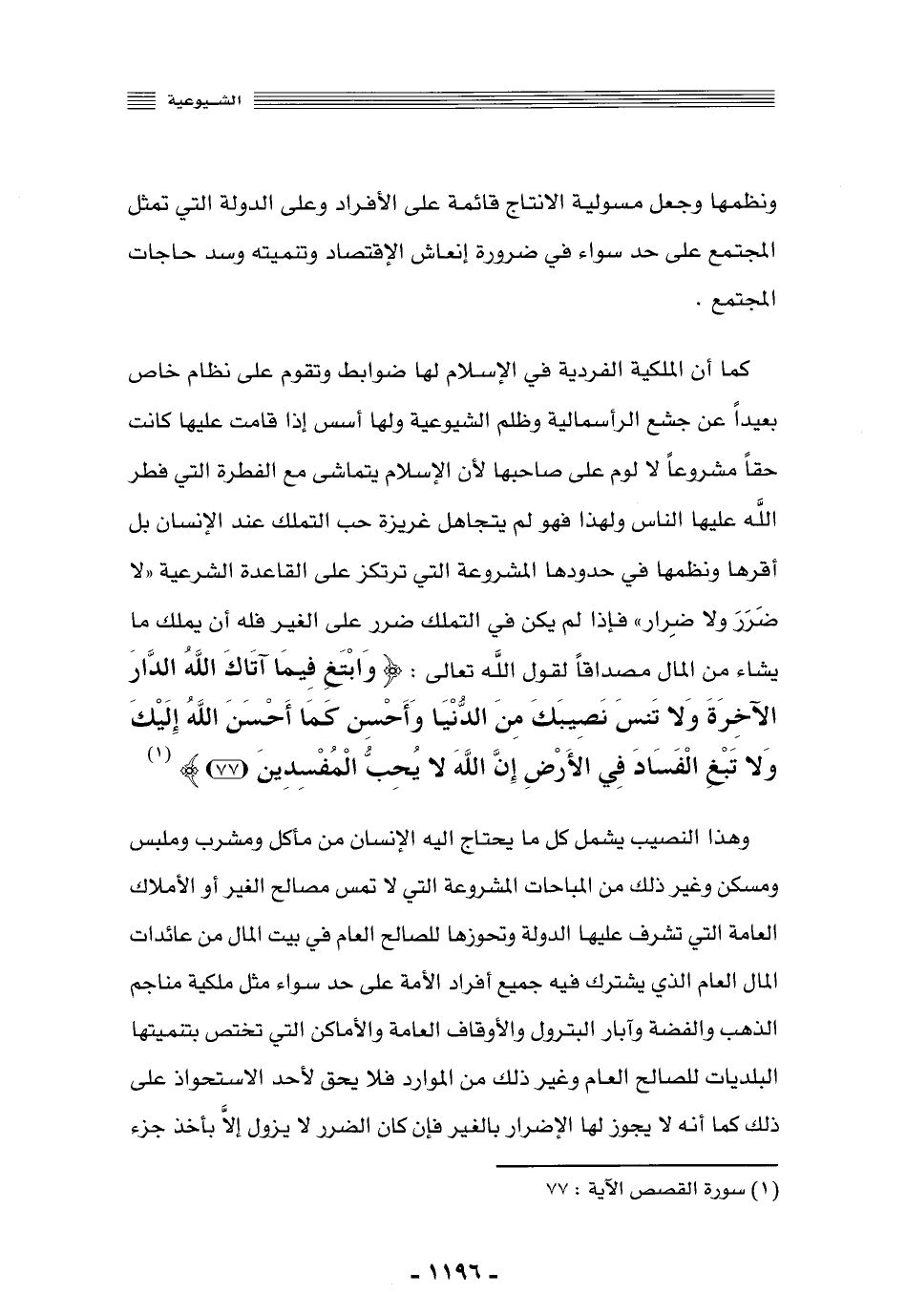 ونظَّمها, وجعل مسئولية الإنتاج قائمة على الأفراد وعلى الدولة التي تمثل المجتمع على حد سواء في ضرورة إنعاش الاقتصاد وتنميته وسد حاجات المجتمع.