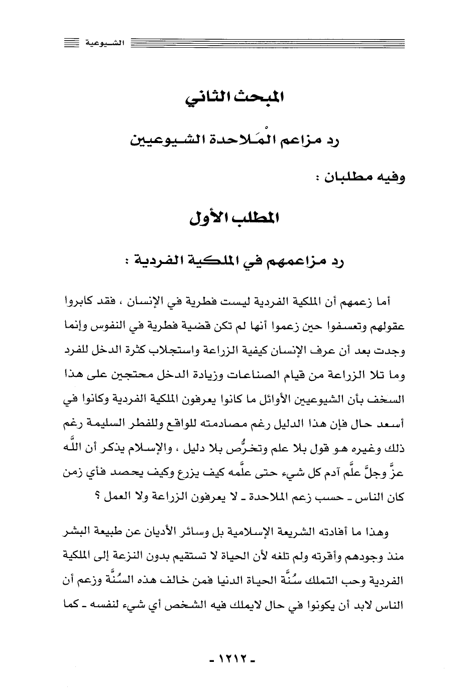 المطلب الأول: رد مزاعمهم في الملكية الفردية