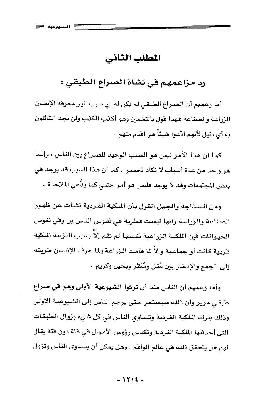 المطلب الثاني: رد مزاعمهم في نشأة الصراع الطبقي