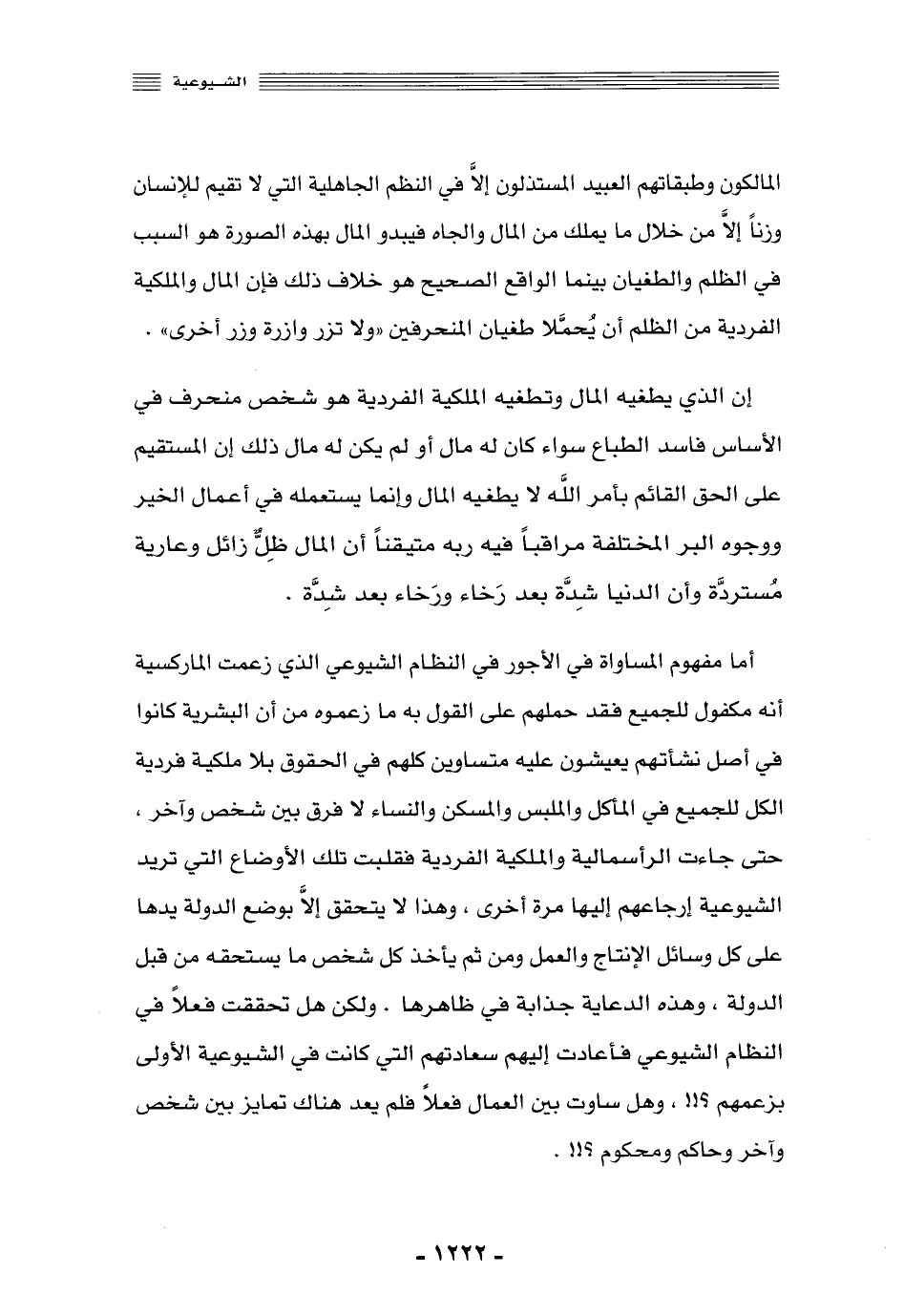 المالكون وطبقاتهم العبيد المستذلون إلّا في النظم الجاهلية التي لا تقيم للإنسان وزنًا إلّا من خلال ما يملك من المال والجاه, فيبدو المال بهذه الصورة هو السبب في الظلم والطغيان, بينما الواقع الصحيح هو خلاف ذلك, فإن المال والملكية الفردية من الظلم أن يحمَّلا طغيان المنحرفين {وَلَا تَزِرُ وَازِرَةٌ وِزْرَ أُخْرَى} .