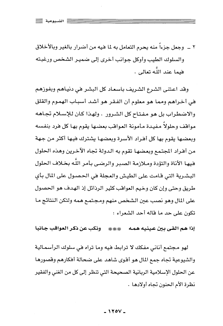 لهو مجتمع أناني مفكّك لا ترابط فيه, وما تراه في سلوك الرأسمالية والشيوعية تجاه جمع المال هو أقوى شاهد على ضحالة أفكارهم وقصورها عن الحلول الإسلامية الربانية الصحيحة, التي تنظر إلى كل من الغني والفقير نظرة الأم الحنون تجاه أولادها.