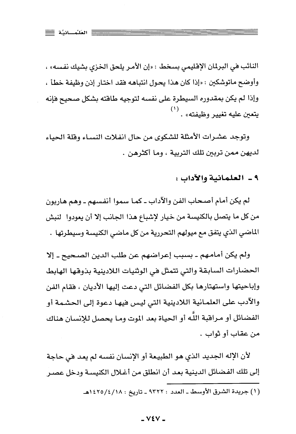 9- العلمانية والآداب:
