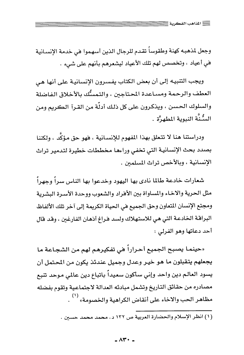 كتاب المذاهب الفكرية المعاصرة ودورها في المجتمعات وموقف المسلم منها