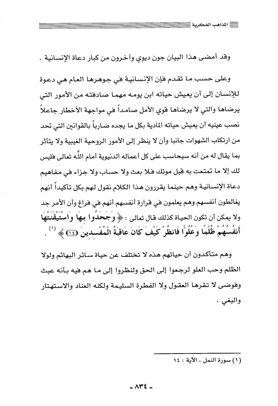 كتاب المذاهب الفكرية المعاصرة ودورها في المجتمعات وموقف المسلم منها
