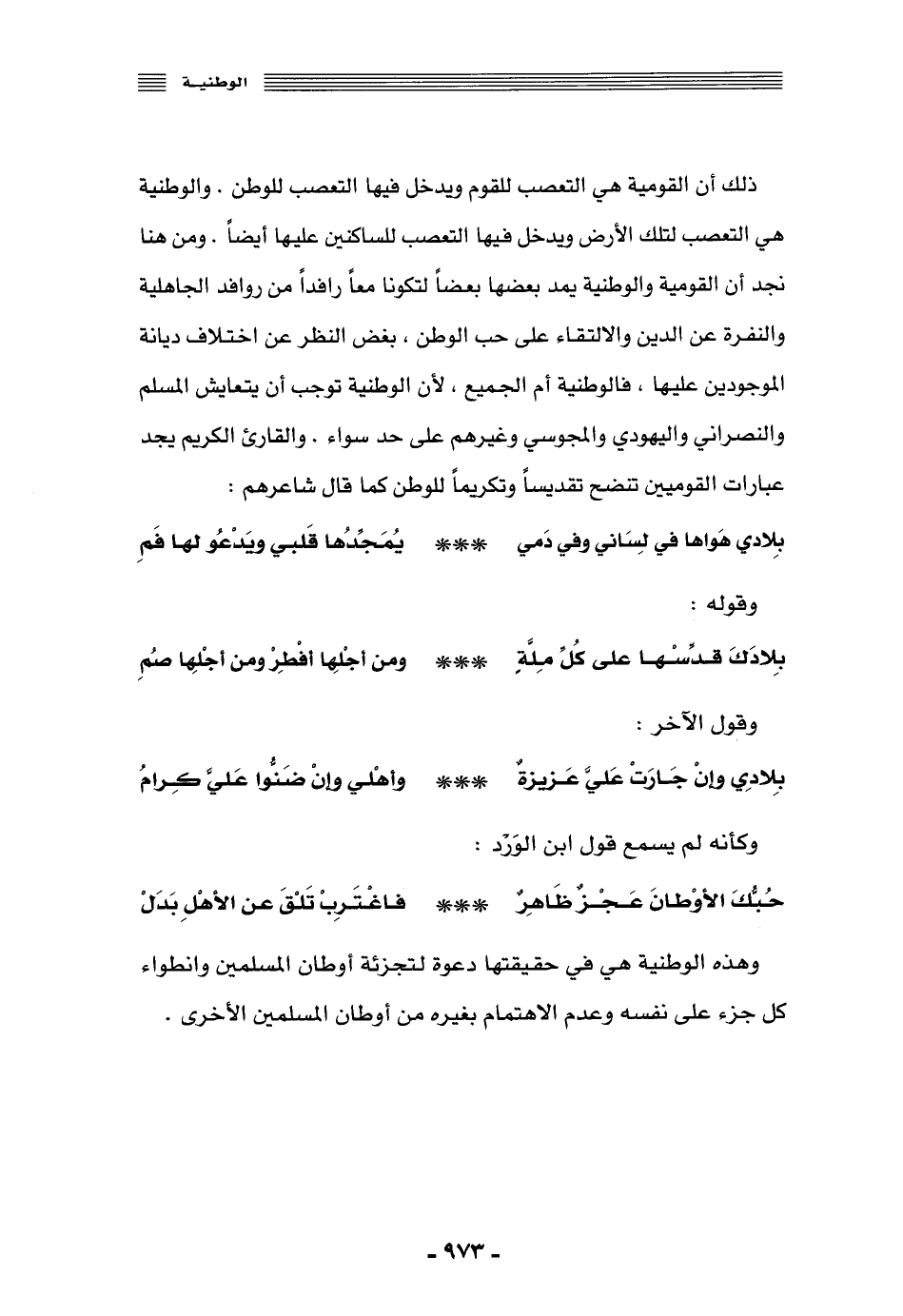 وهذه الوطنية هي في حقيقتها دعوة لتجزئة أوطان المسلمين, وانطواء كل جزء على نفسه وعدم الاهتمام بغيره من أوطان المسلمين الأخرى.