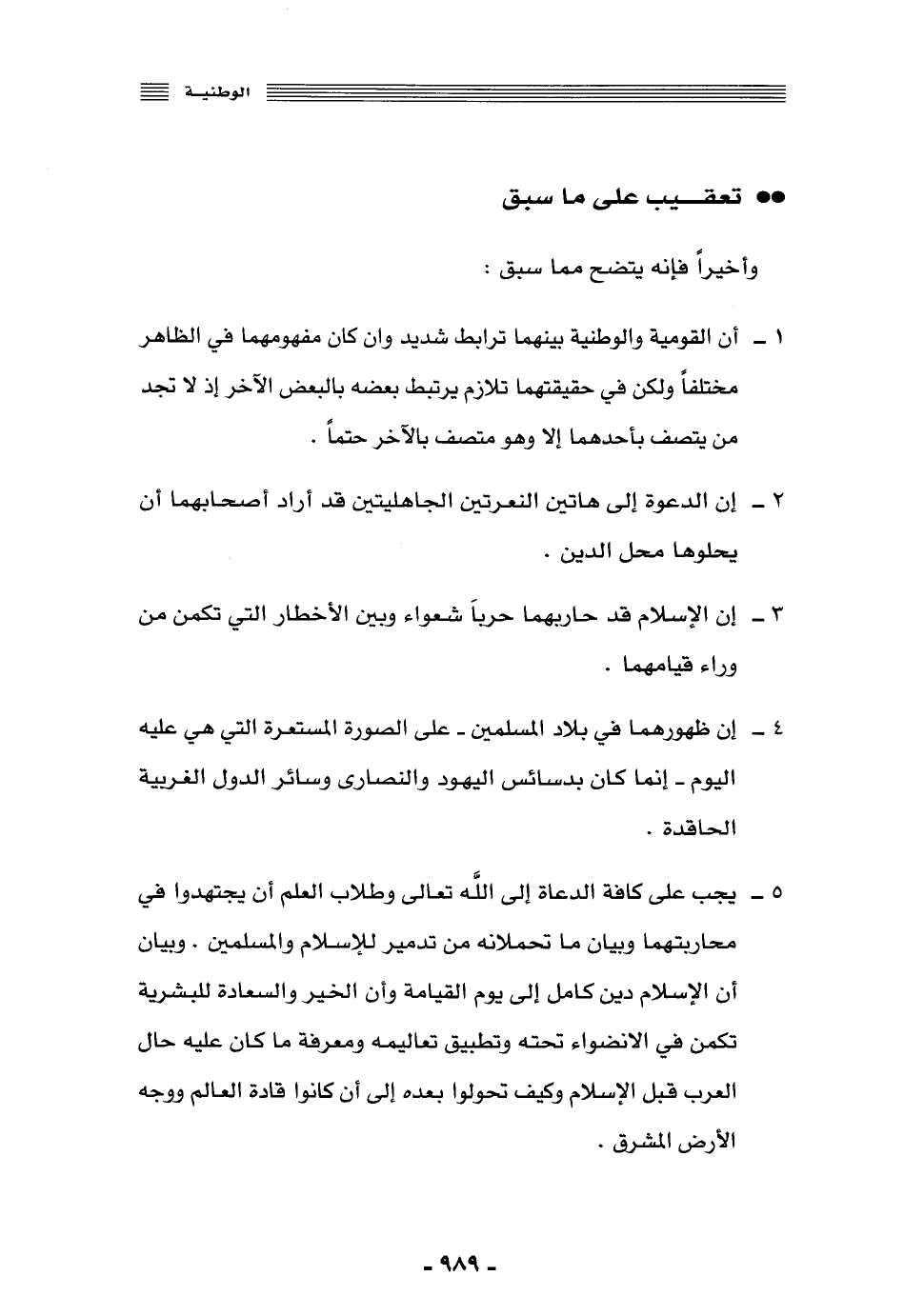 1- إن القومية والوطنية بينهما ترابط شديد وإن كان مفهومهما في الظاهر مختلفًا, ولكن في حقيقتهما تلازم يرتبط بعضه بالبعض الآخر؛ إذ لا تجد من يتصف بأحدهما إلّا وهو متصف بالآخر حتمًا.