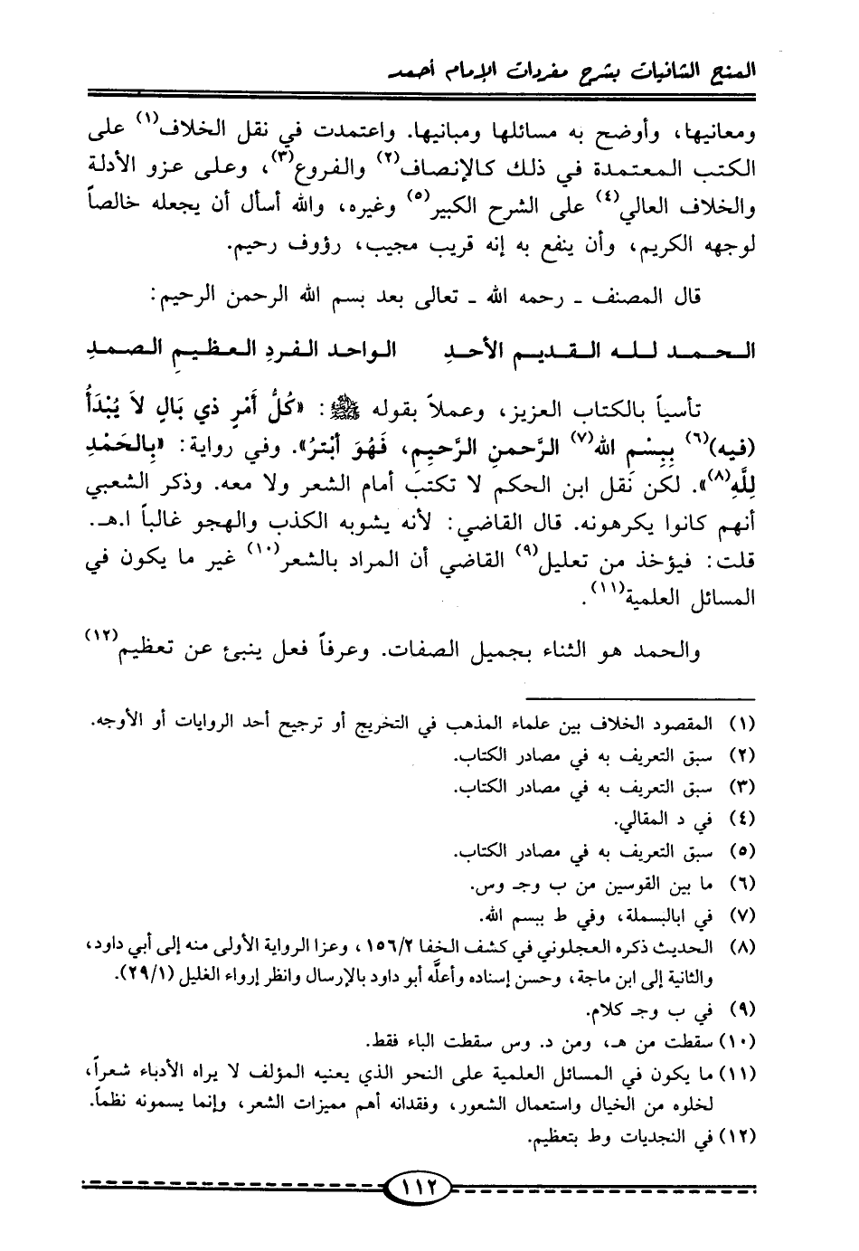 كتاب المنح الشافيات بشرح مفردات الإمام أحمد (اسم الجزء: 1)