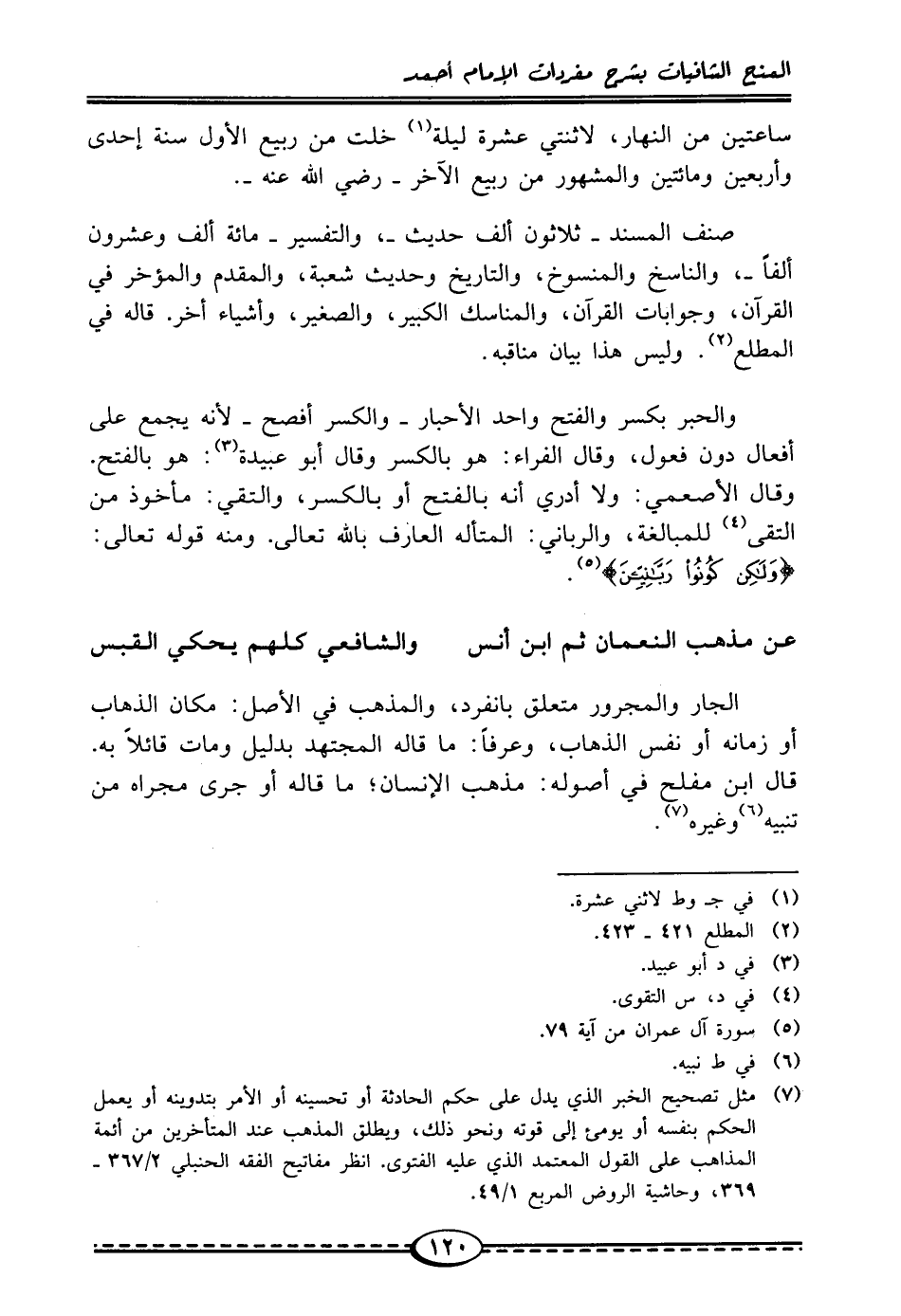 كتاب المنح الشافيات بشرح مفردات الإمام أحمد (اسم الجزء: 1)