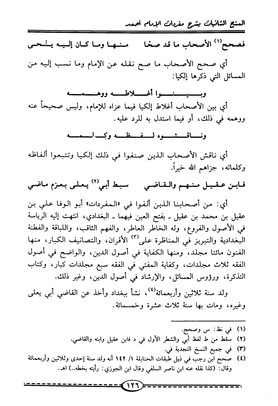 (¬4) صحح ابن رجب في ذيل طبقات الحنابلة 1/ 142 أنه ولد سنة إحدى وثلاثين وأربعمانة وقال: (كذا نقله عنه ابن ناصر السلفي وقال ابن الجوزي: رأيته بخطه ..) أهـ.