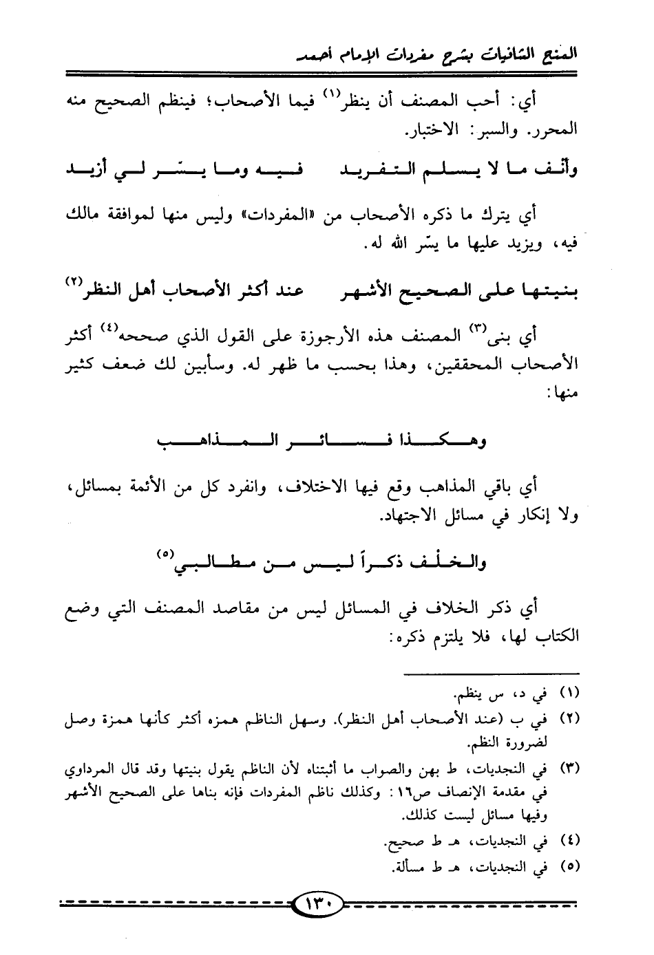(¬3) في النجديات، ط بهن والصواب ما أثبتناه لأن الناظم يقول بنيتها وقد قال المرداوي في مقدمة الإنصاف ص 16: وكذلك ناظم المفردات فإنه بناها على الصحيح الأشهر وفيها مسائل ليست كذلك.