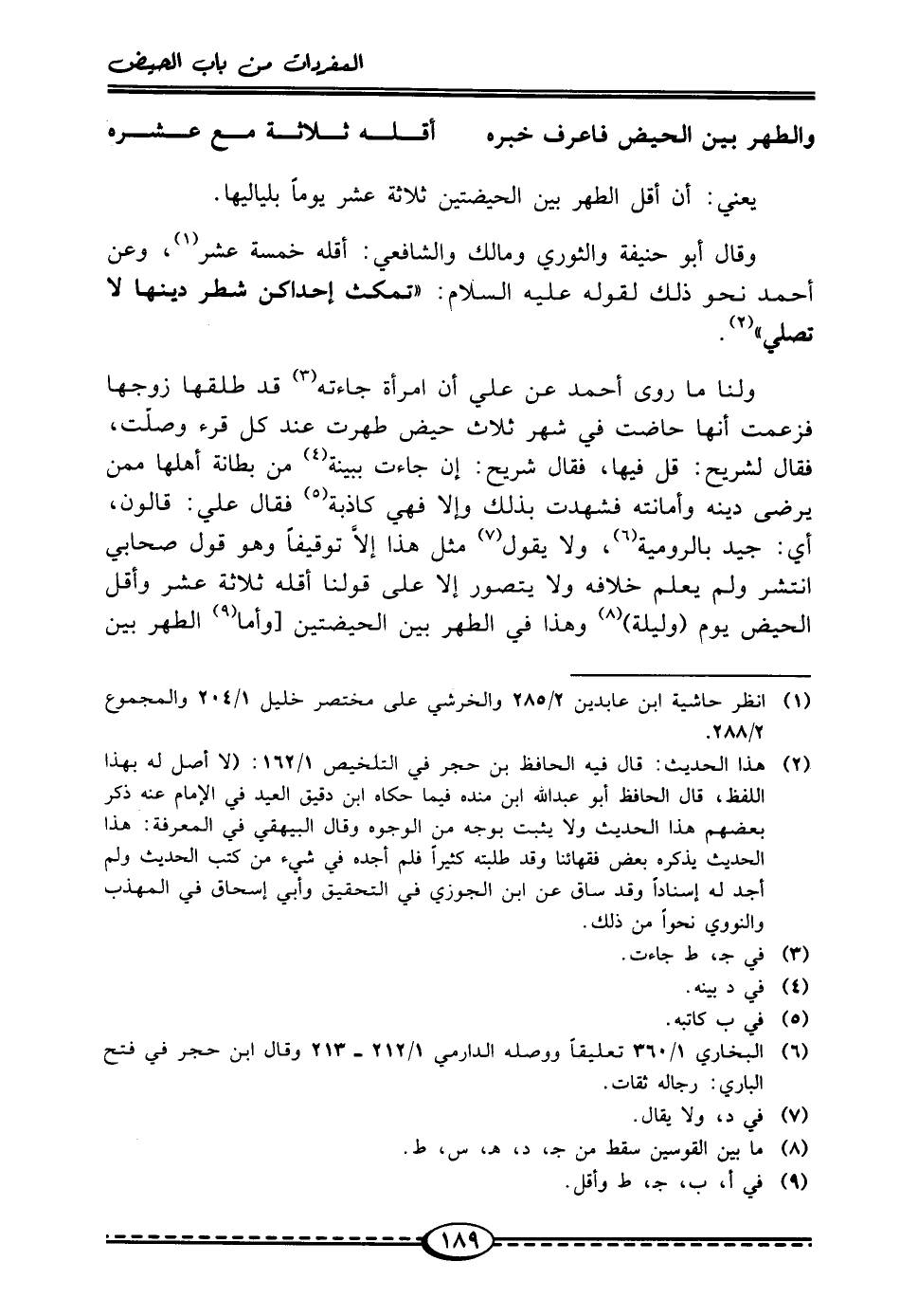 (¬1) انظر حاشية ابن عابدين 2/ 285 والخرشي على مختصر خليل 1/ 204 والمجموع 2/ 288.