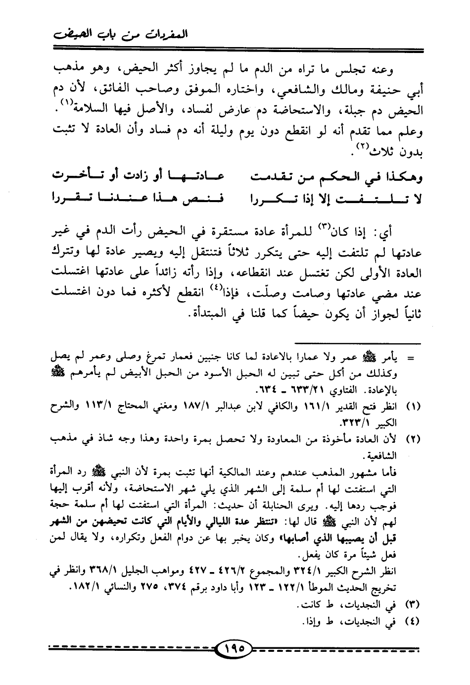 أي: إذا كان (¬3) للمرأة عادة مستقرة في الحيض رأت الدم في غير عادتها لم تلتفت إليه حتى يتكرر ثلاثًا فتنتقل إليه ويصير عادة لها وتترك العادة الأولى لكن تغتسل عند انقطاعه، وإذا رأته زائدًا على عادتها اغتسلت عند مضي عادتها وصامت وصلّت، فإذا (¬4) انقطع لأكثره فما دون اغتسلت ثانيًا لجواز أن يكون حيضًا كما قلنا في المبتدأة.