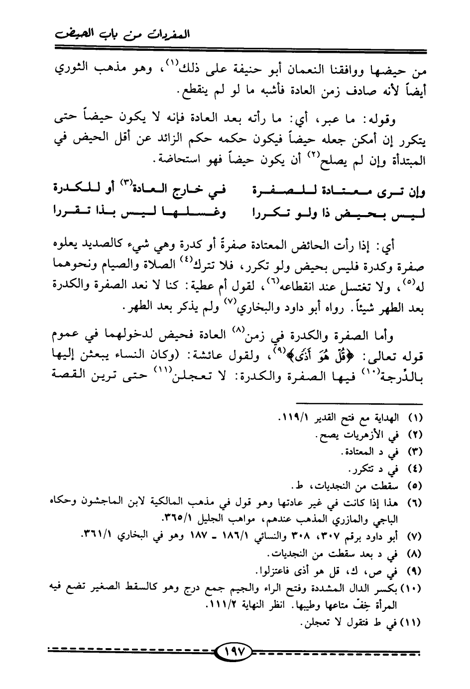 (¬6) هذا إذا كانت في غير عادتها وهو قول في مذهب المالكية لابن الماجشون وحكاه الباجي والمازري المذهب عندهم، مواهب الجليل 1/ 365.