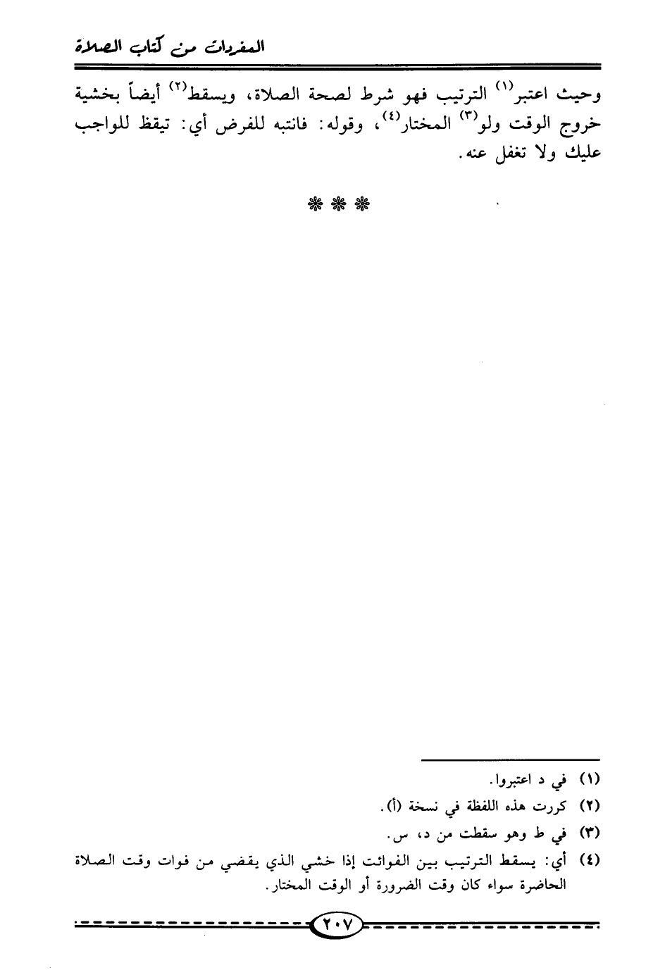 وحيث اعتبر (¬1) الترتيب فهو شرط لصحة الصلاة، ويسقط (¬2) أيضًا بخشية خروج الوقت ولو (¬3) المختار (¬4)، وقوله: فانتبه للفرض أي: تيقظ للواجب عليك ولا تغفل عنه.