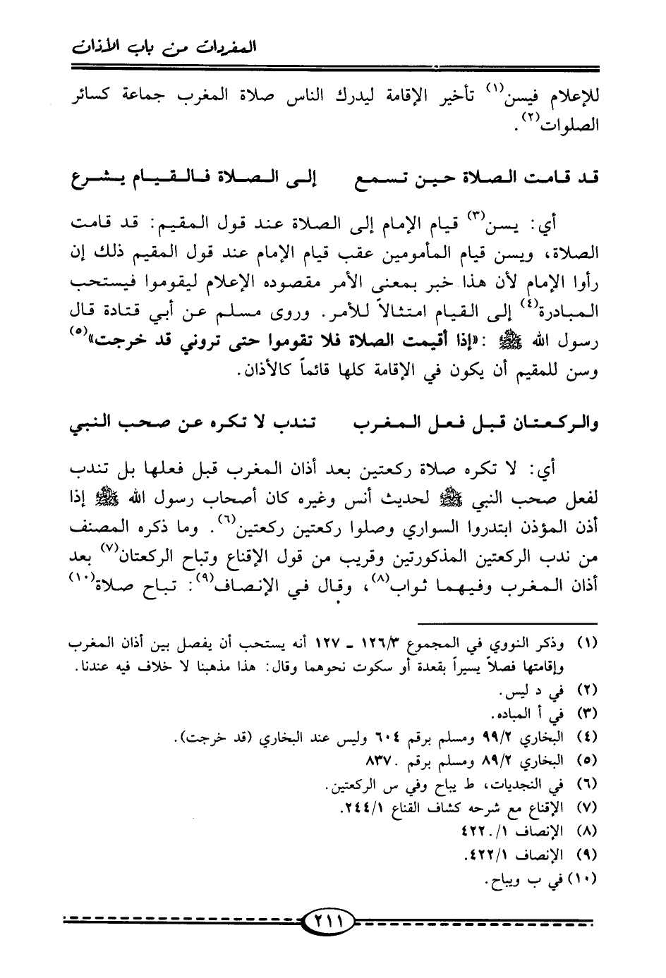 للإعلام فيسن (¬1) تأخير الإقامة ليدرك الناس صلاة المغرب جماعة كسائر الصلوات (¬2).