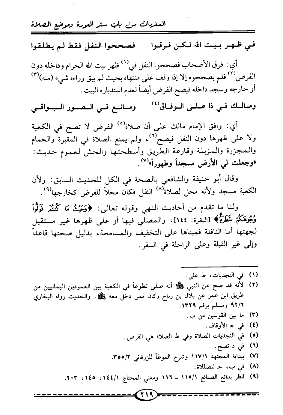 في ظهر بيت الله لكن فرقوا ... فصححوا النفل فقط لم يطلقوا