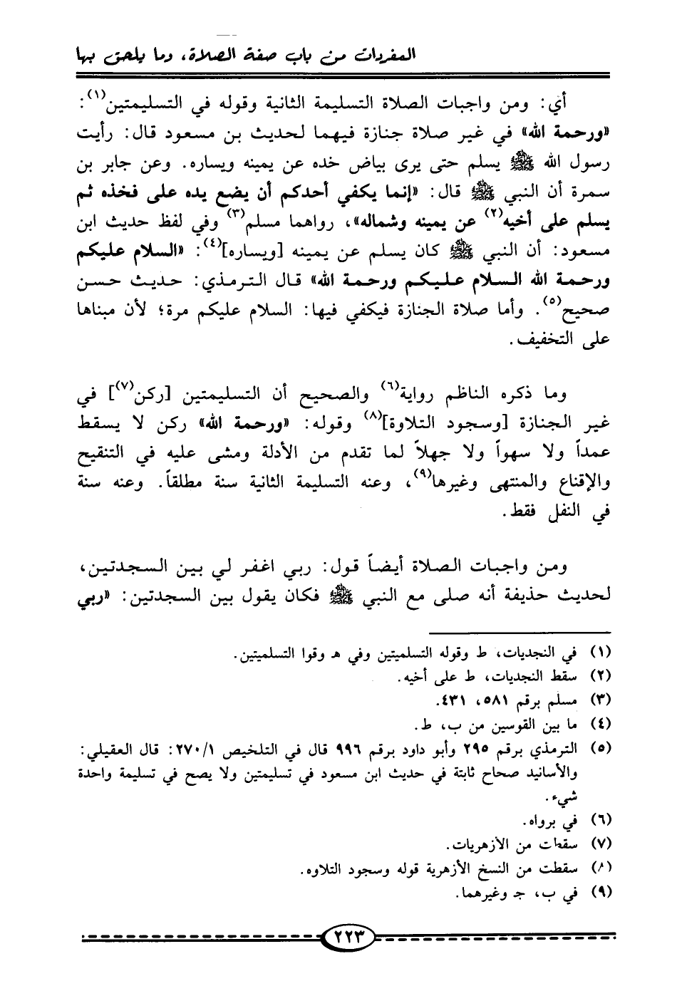 (¬1) في النجديات، ط وقوله التسلميتين وفي هـ وقوا التسلميتين.