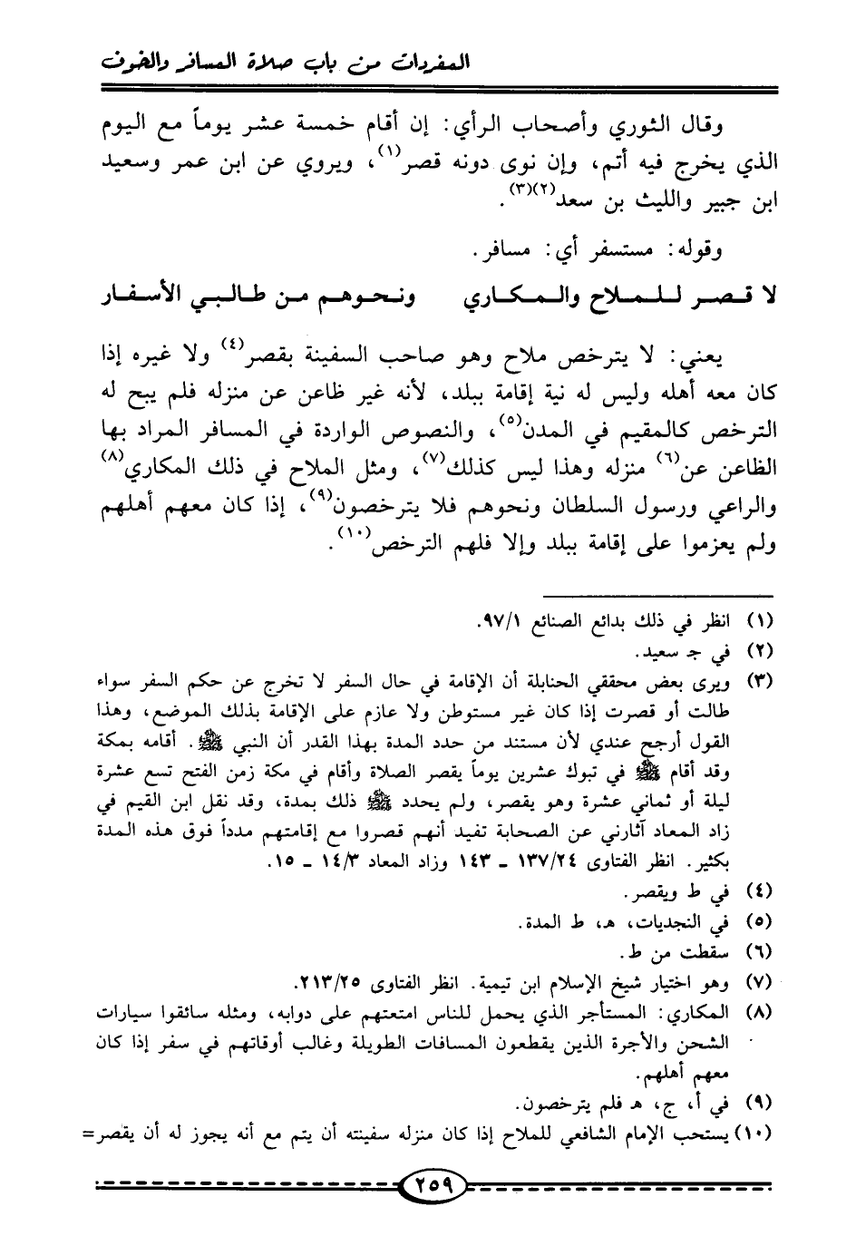 لا قصر للملاح والمكاري ... ونحوهم من طالبي الأسفار