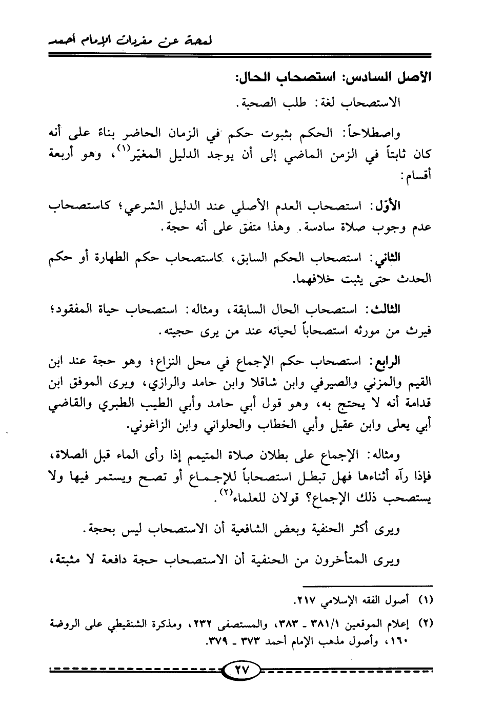 الأصل السادس: استصحاب الحال: