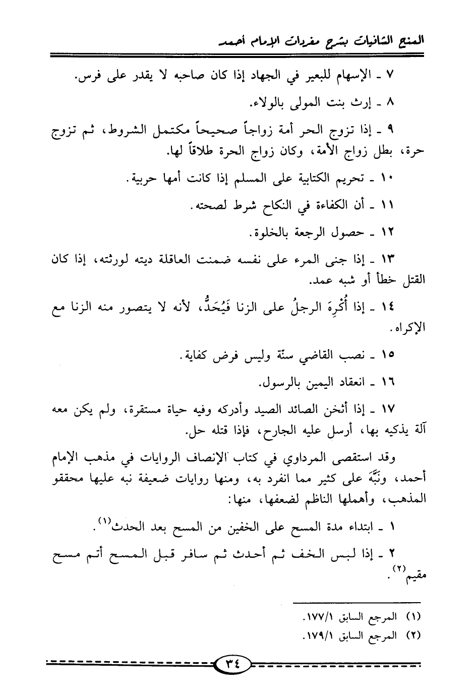 وقد استقصى المرداوي في كتاب الإنصاف الروايات في مذهب الإمام أحمد، ونَبَّهَ على كثير مما انفرد به، ومنها روايات ضعيفة نبه عليها محققو المذهب، وأهملها الناظم لضعفها، منها:
