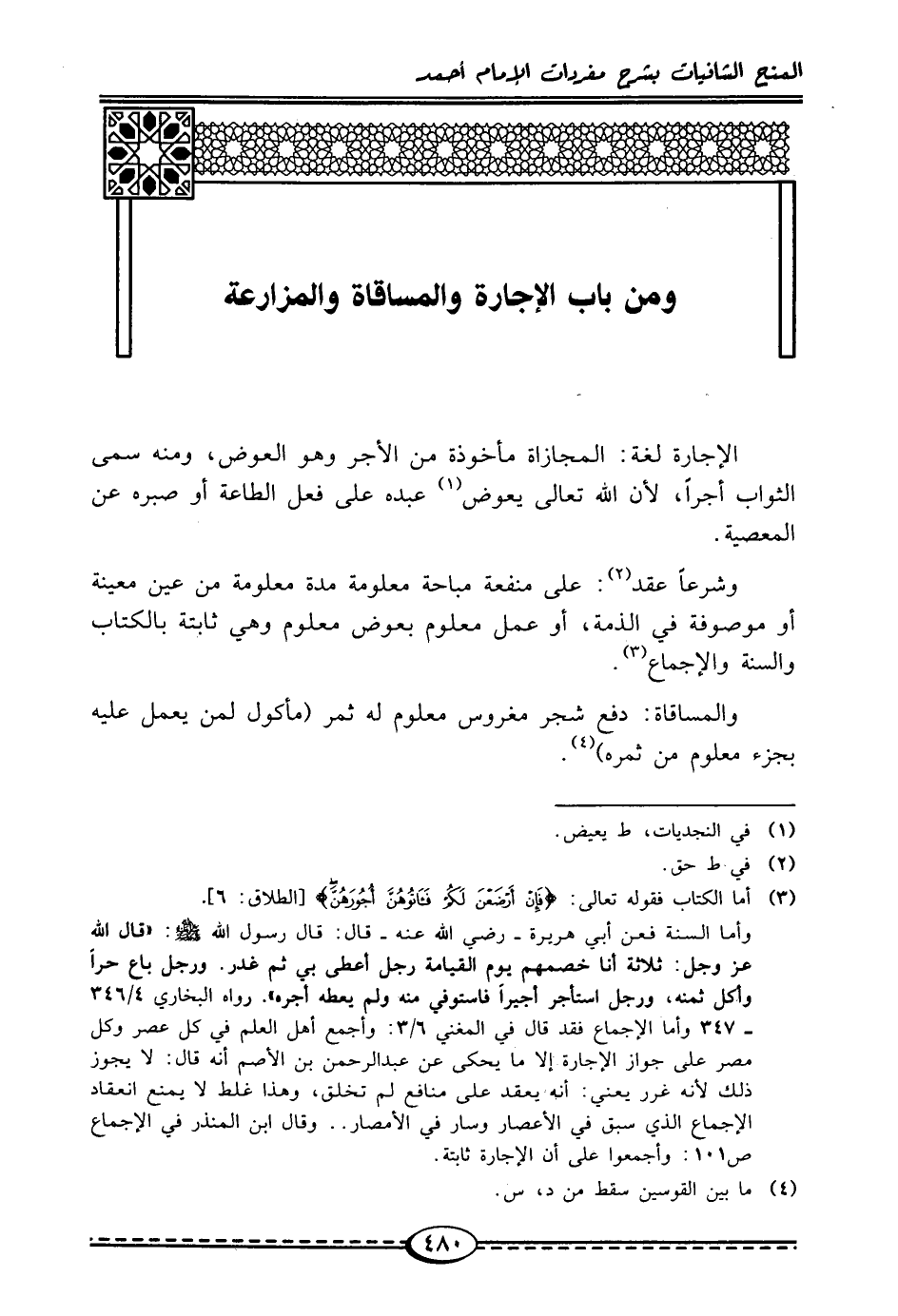 ومن باب الإجارة والمساقات والمزارعة