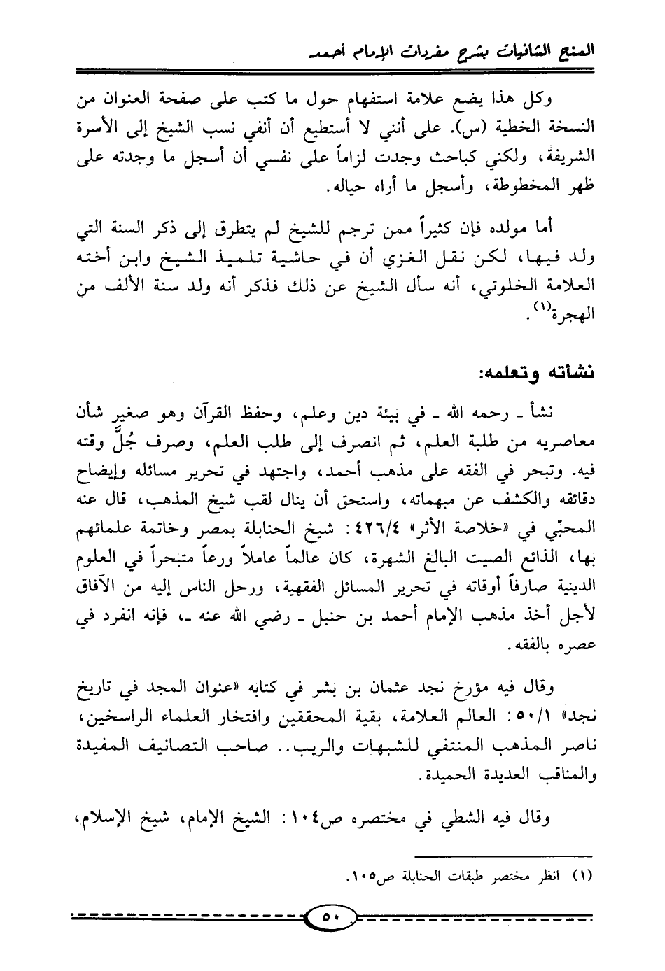(¬1) انظر مختصر طبقات الحنابلة ص 105.