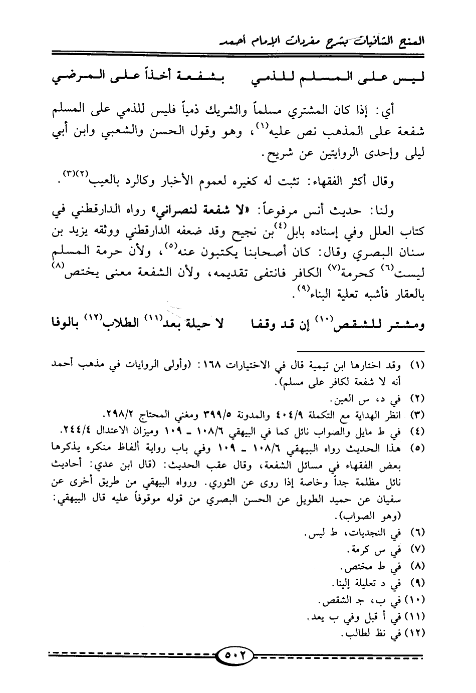 (¬1) وقد اختارها ابن تيمية قال في الاختيارات 168: (وأولى الروايات في مذهب أحمد أنه لا شفعة لكافر على مسلم).