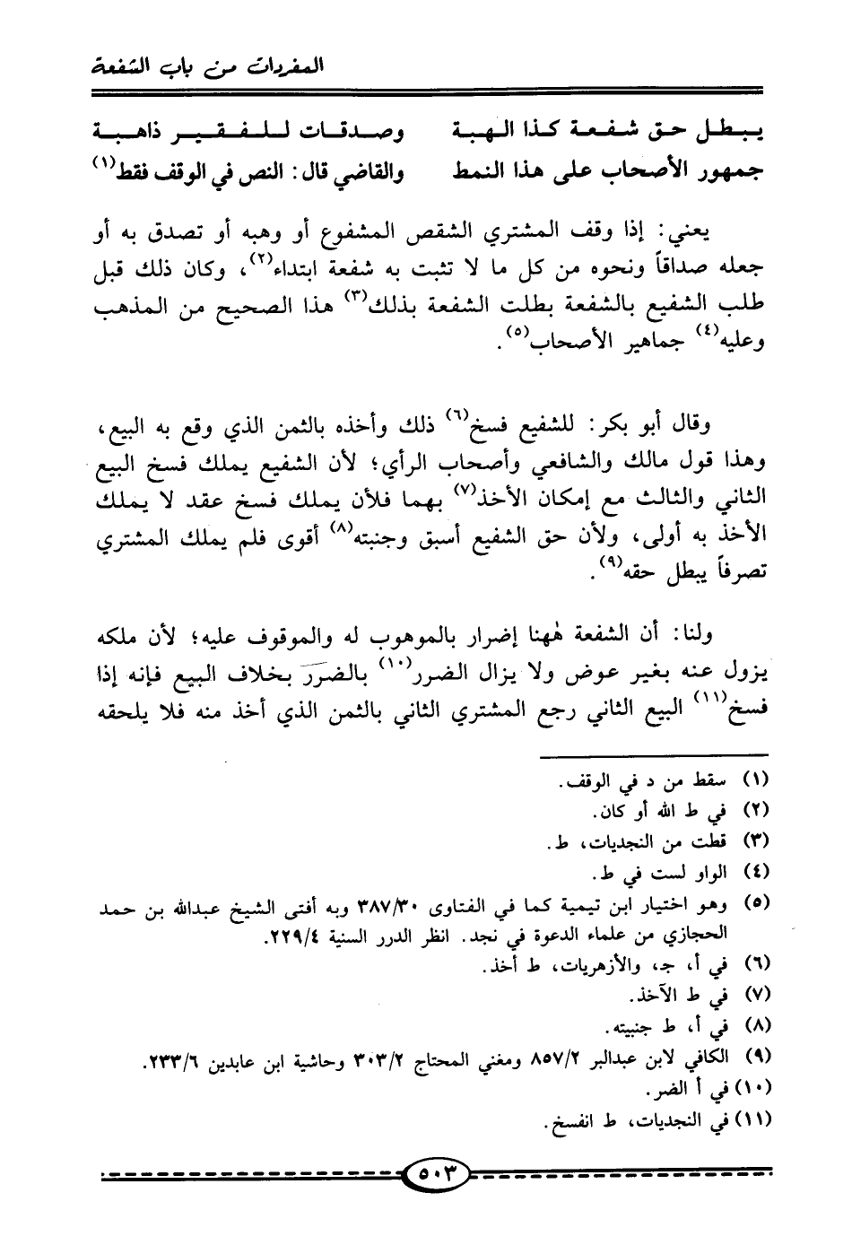 (¬9) الكافي لابن عبد البر 2/ 857 ومغني المحتاج 2/ 303 وحاشية ابن عابدين 6/ 233.