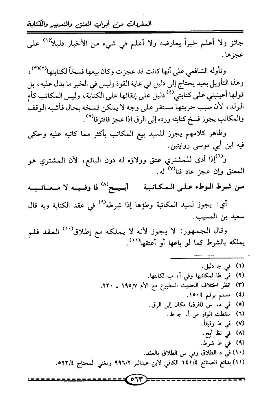 (¬11) بدائع الصنائع 4/ 141 الكافي لابن عبد البر 2/ 996 ومغني المحتاج 4/ 522.