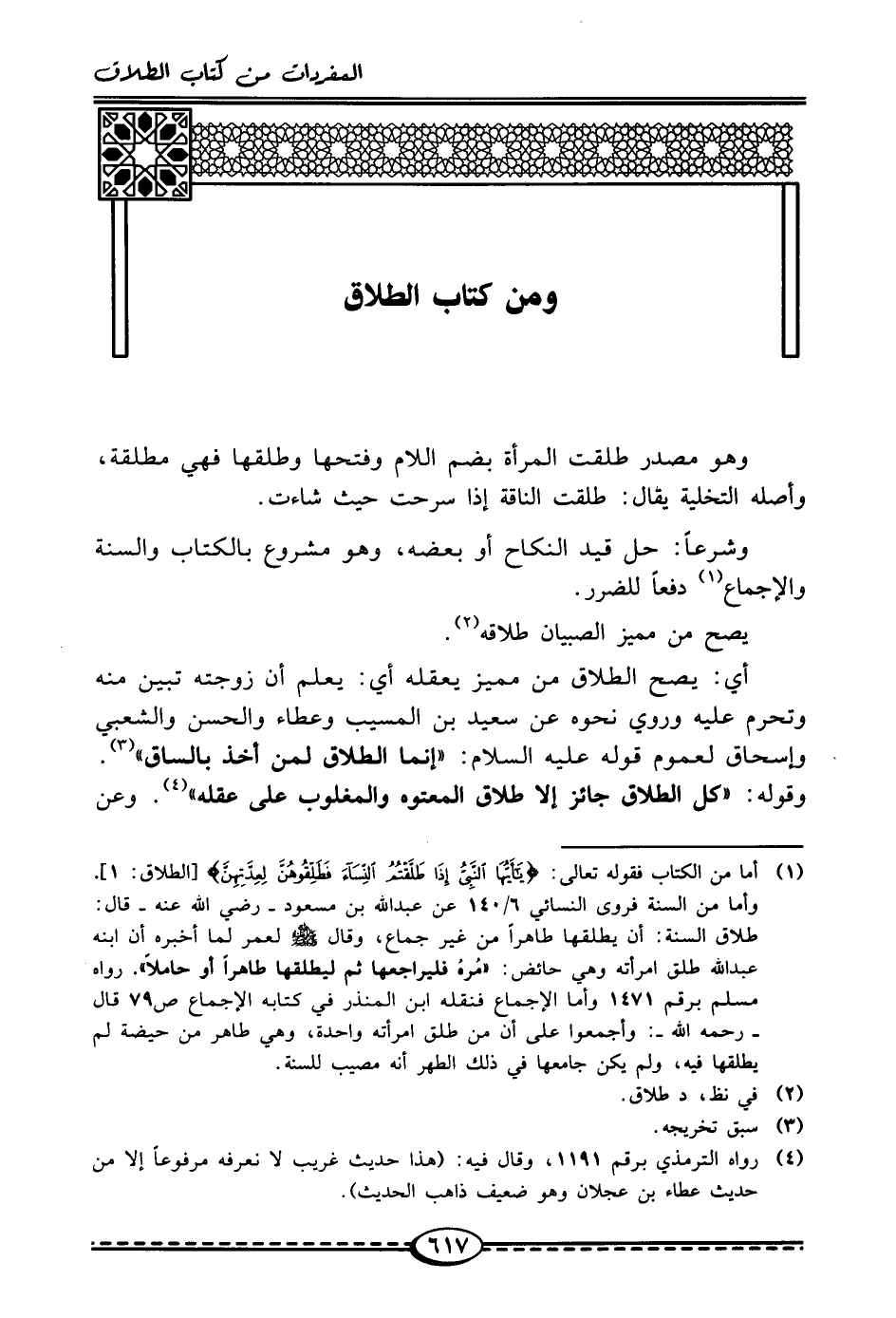 وهو مصدر طلقت المرأة بضم اللام وفتحها وطلقها فهي مطلقة، وأصله التخلية يقال: طلقت الناقة إذا سرحت حيث شاءت.
