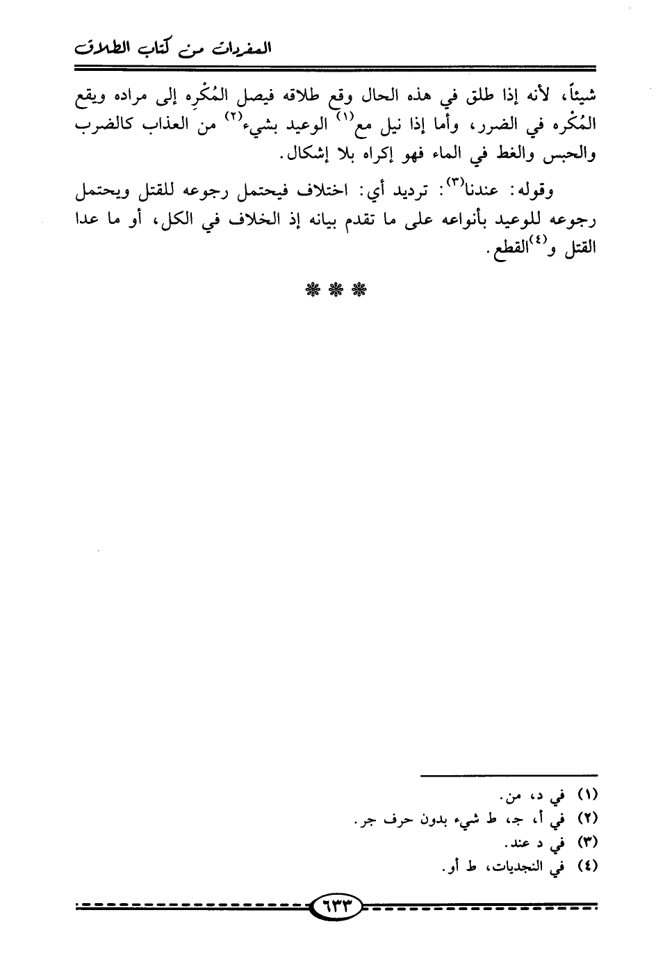 شيئًا، لأنه إذا طلق في هذه الحال وقع طلاقه فيصل المُكْرِه إلى مراده ويقع المُكْره في الضرر، وأما إذا نيل مع (¬1) الوعيد بشيء (¬2) من العذاب كالضرب والحبس والغط في الماء فهو إكراه بلا إشكال.