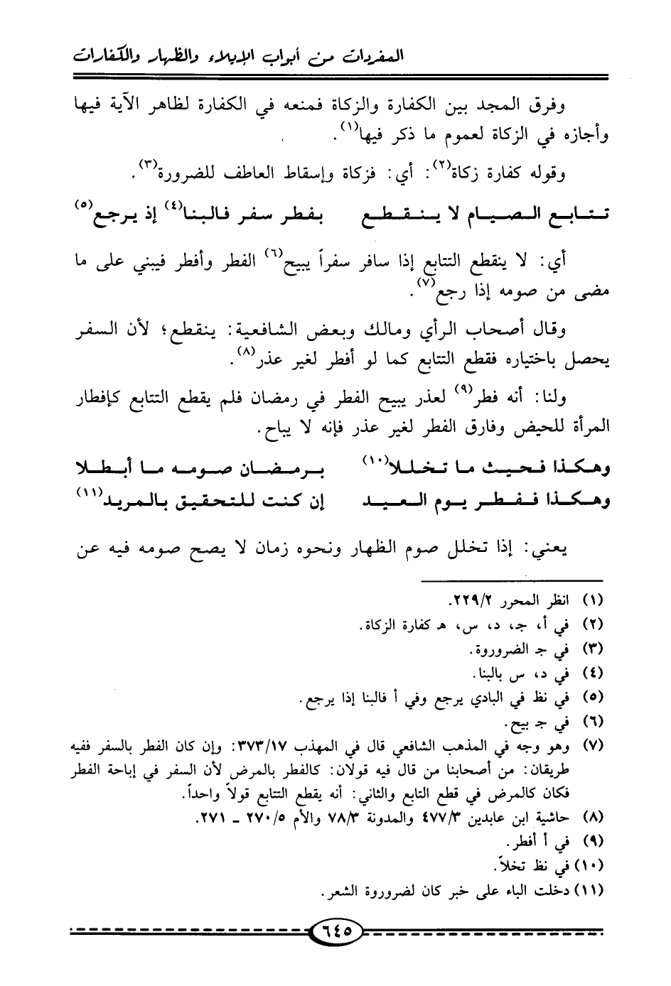 تتابع الصيام لا ينقطع ... بفطر سفر فالبنا (¬4) إذ يرجع (¬5)