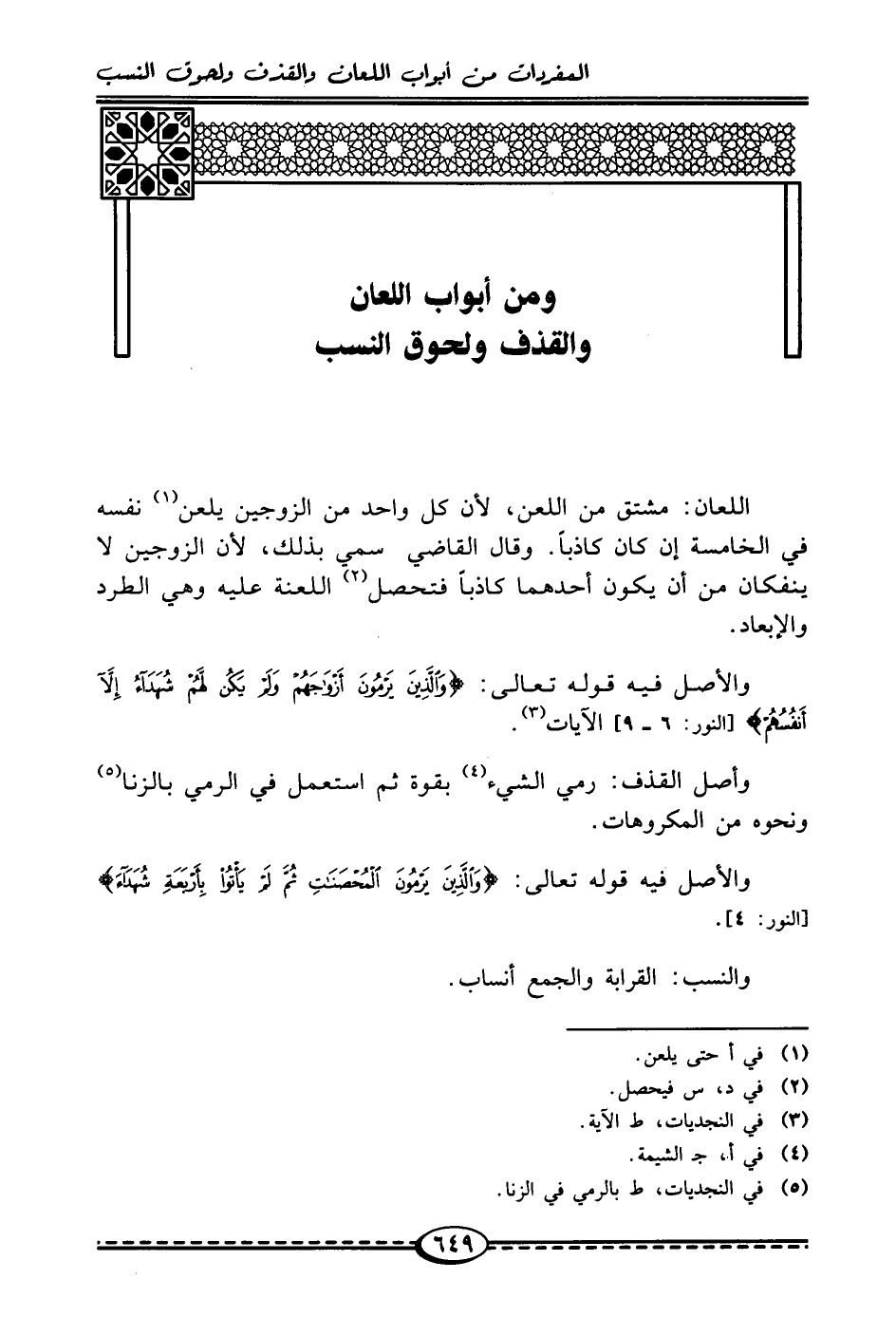 ومن أبواب اللعان والقذف ولحوق النسب