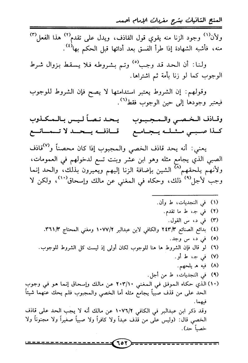 (¬10) الذي حكاه الموفق في المغني 10/ 203 عن مالك وإسحاق إنما هو في وجوب الحد على من قذف صبيًا يجامع مثله أما الخصي والمجبوب فلم يحك عنهما شيئًا فيهما.