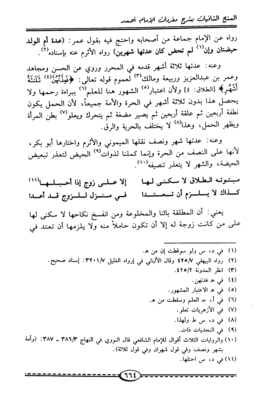 (¬10) والروايات الثلاث أقوال للإمام الشافعي قال النووي في المنهاج 3/ 386 - 387: (وأمة بشهر ونصف وفي قول شهران وفي قول ثلاثة).