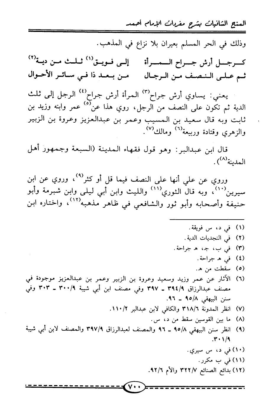 يعني: يساوي أرش جراح (¬3) المرأة أرش جراح (¬4) الرجل إلى ثلث الدية ثم تكون على النصف من الرجل، روي هذا عن (¬5) عمر وابنه وزيد بن ثابت وبه قال سعيد بن المسيب وعمر بن عبد العزيز وعروة بن الزبير والزهري وقتادة وربيعة (¬6) ومالك (¬7).