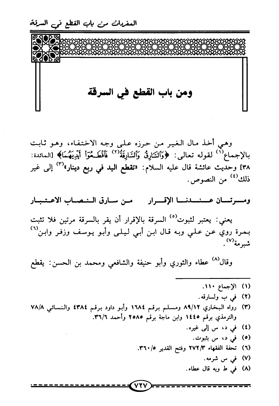 ومن باب القطع في السرقة