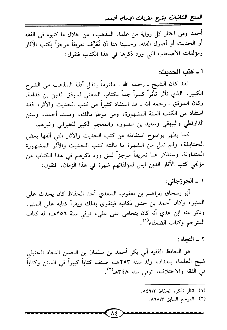 كتاب المنح الشافيات بشرح مفردات الإمام أحمد (اسم الجزء: 1)