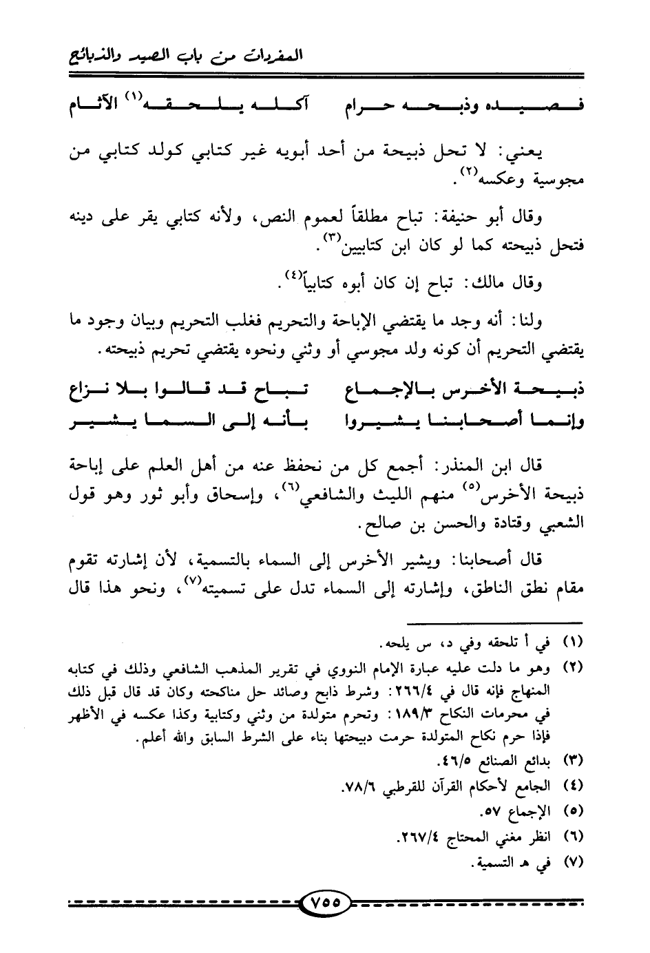 فصيده وذبحه حرام ... آكله يلحقه (¬1) الآثام