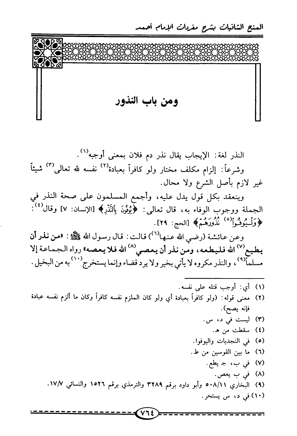 ومن باب النذور